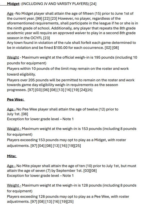 The MMC Tackle Football Program is a competitive, public program provided for children between the grades of 3rd through 8th Grade. We currently compete in the Old Colony Youth Football League. All coaches and volunteers are certified through USA Football for Concussion and Football Safety and provide a great foundation for instilling hard work, determination and discipline for all of our athletes.
